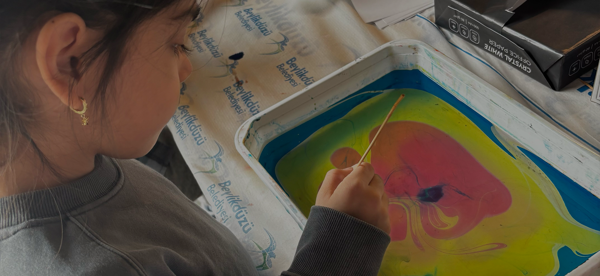 Yarıyıl Şenlikleri kapsamında çocuklar için hazırladığımız atölyelerde buluştuk. Ebru Atölyemizde çocuklar renklerin dans mucizesine eşlik edip, Ebru sanatının sırlarını, renkleri kullanmayı öğrenip, hem yaratıcılıklarını, hem de hayal dünyalarındaki renkleri su yüzüne çıkararak kendi desenlerini oluşturdular.